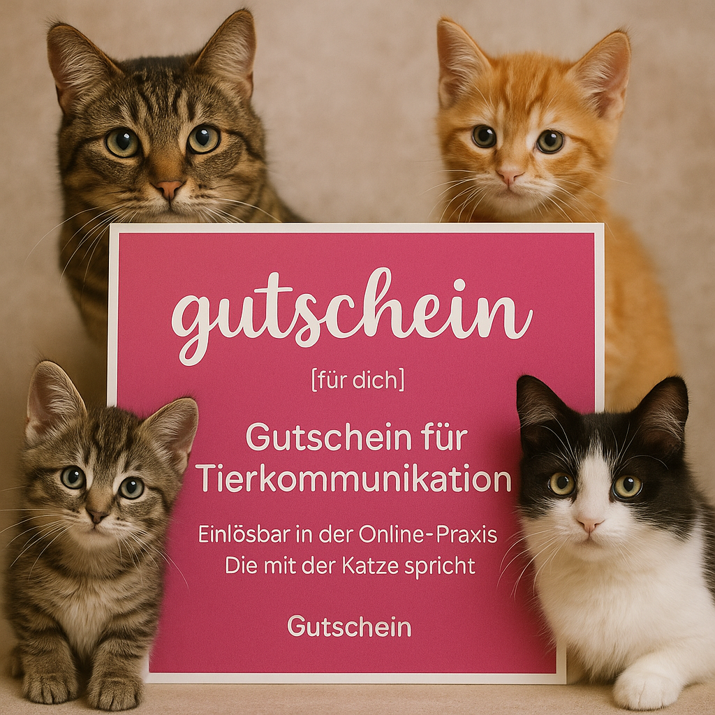 Mit diesem Gutschein erhältst du Tierkommunikation für bis zu 4 Tiere (Hund, Katze oder Pferd).