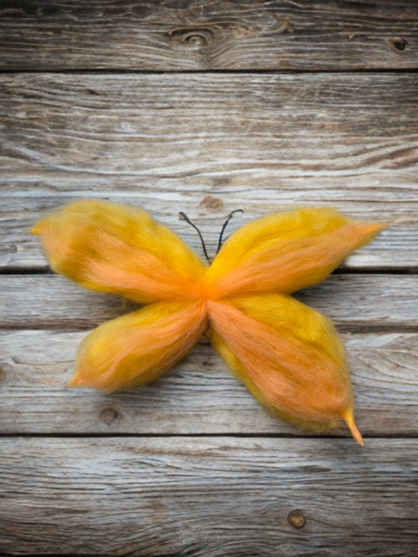 Dieser handgefilzte Schmetterling entsteht in liebevoller Handarbeit aus reiner Schafwolle.